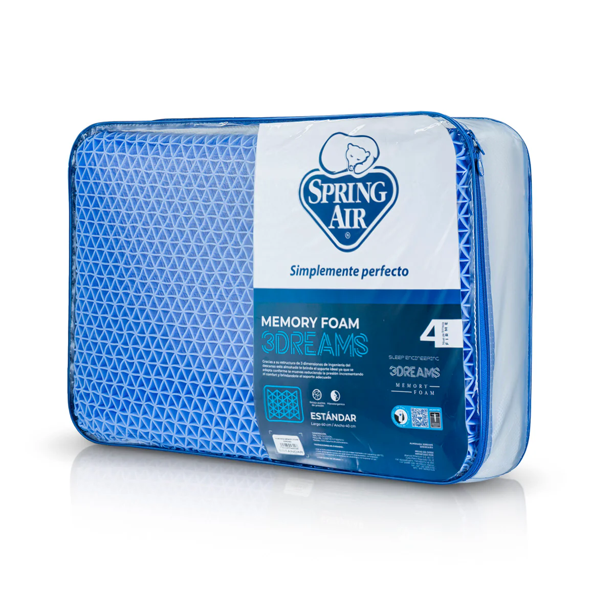 Almohada fabricada con materiales duraderos, no tóxicos y frescos, diseñada con canales de aire en forma de hexágonos que mejoran la ventilación y comodidad durante la noche. No se deforma ni se hunde, adaptándose al peso y forma de la cabeza y cuello para brindar un descanso óptimo sin generar presión. Es resistente, hipoalergénica, anti ácaros, fresca y no retiene olores.