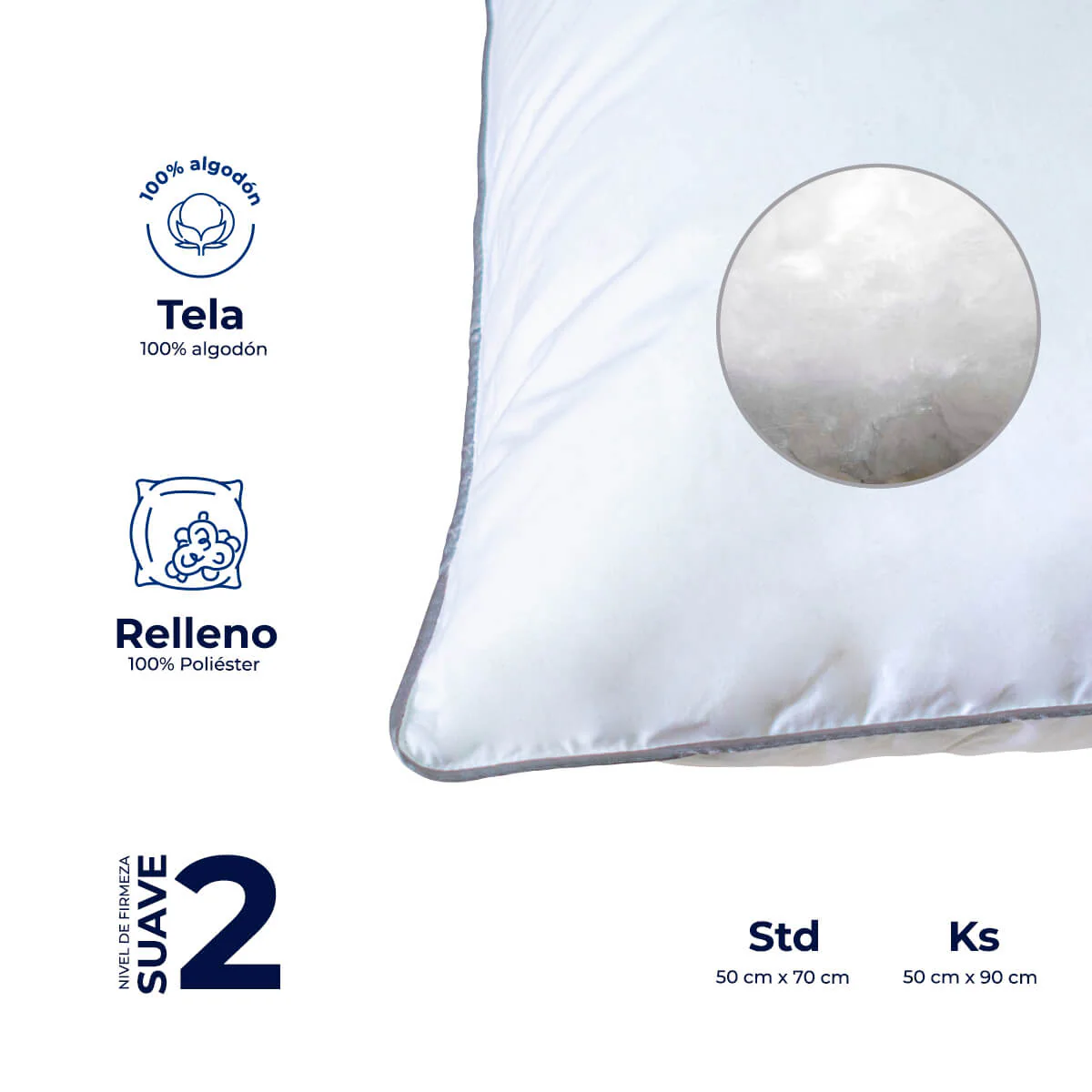 Descansa como nunca con la Almohada Memory Fiber. Su diseño combina la adaptabilidad del memory foam con la suavidad y soporte de fibras premium, logrando el equilibrio perfecto entre confort y firmeza.